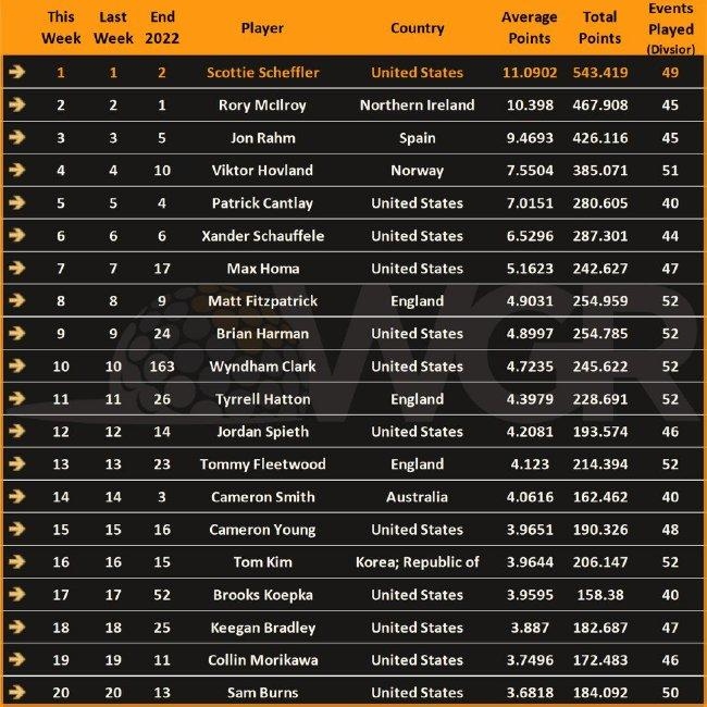 萊德杯為歐美對抗賽,在意大利羅馬聚集了全世界最優秀的24名選手,不過這場賽事沒有世界積分,世界前十的排序沒有受到影響。