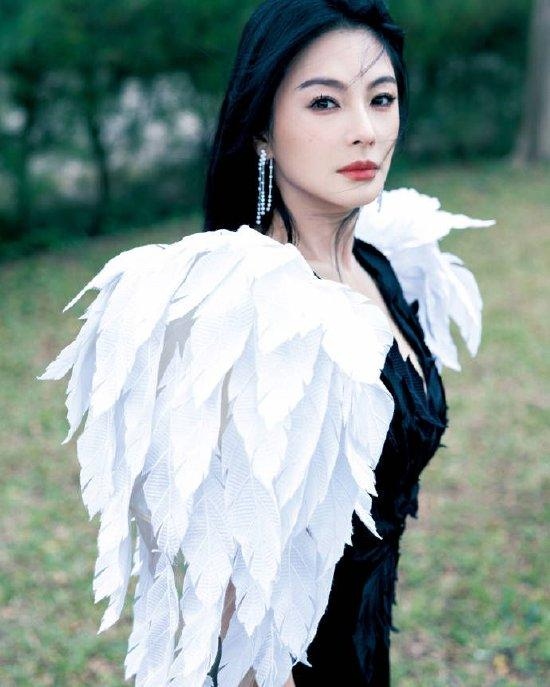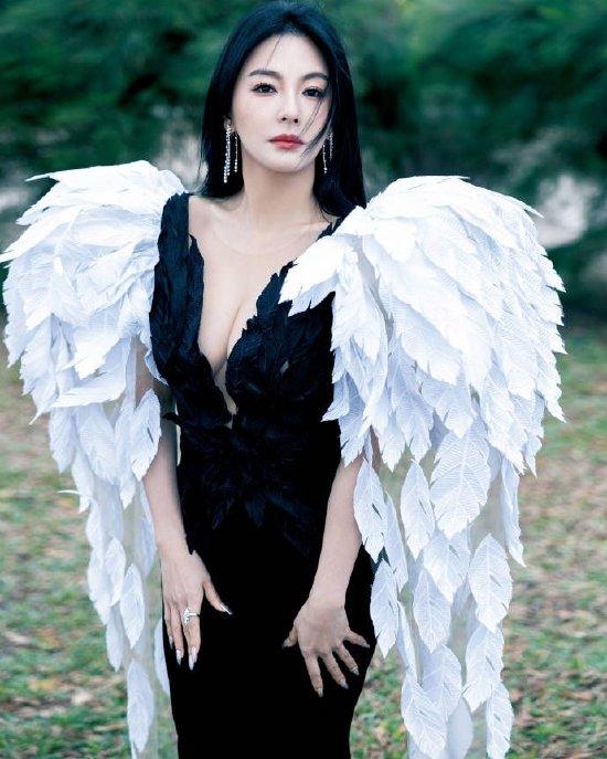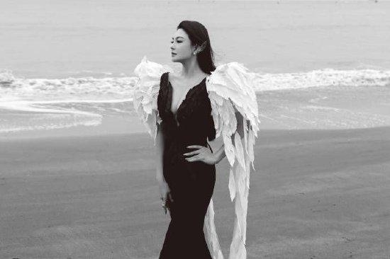 張雨綺穿深V禮服秀傲人身材 海邊漫步似優雅黑天鵝