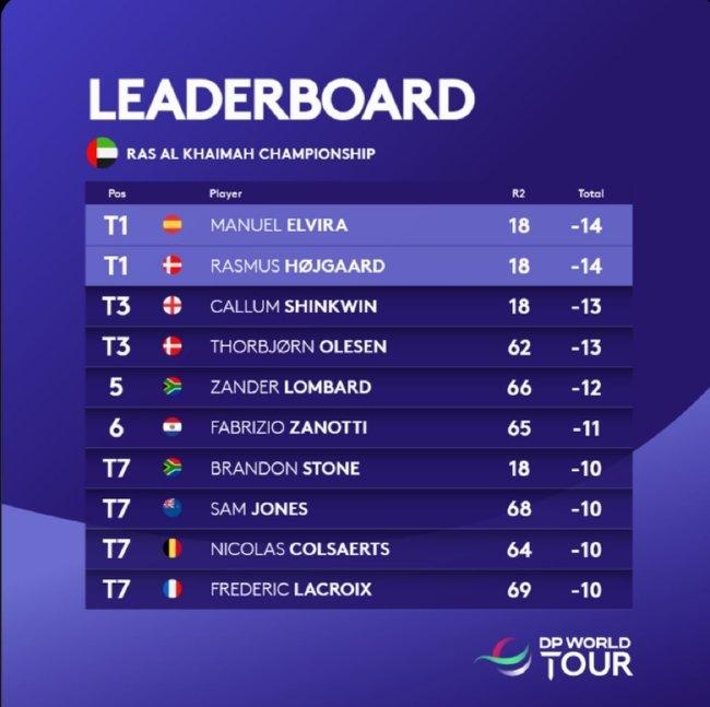 北京時間1月26日,哈斯瑪斯-海格(Rasmus Hojgaard)與曼威爾-埃爾維拉(Manuel Elvira)在拉斯海瑪錦標賽第二輪過后沖到榜首位置。