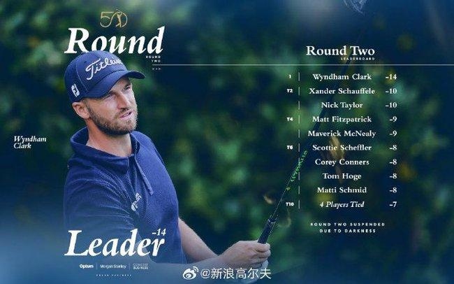 馬特-菲茨帕特里克(Matt Fitzpatrick)69桿,馬弗里克-麥克尼利(Maverick McNealy)68桿,兩人以135桿,低于標(biāo)準(zhǔn)桿9桿,并列位于第四位,落后5桿。
