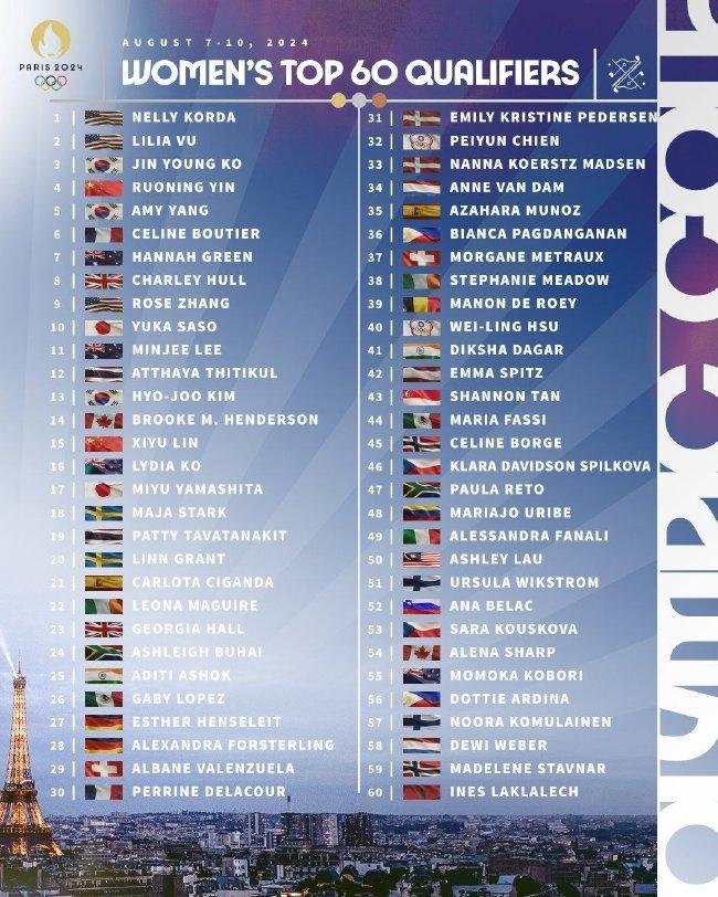 年度第三場大滿貫結束之后,奧運會女子高爾夫項目的參賽名單也正式確認。