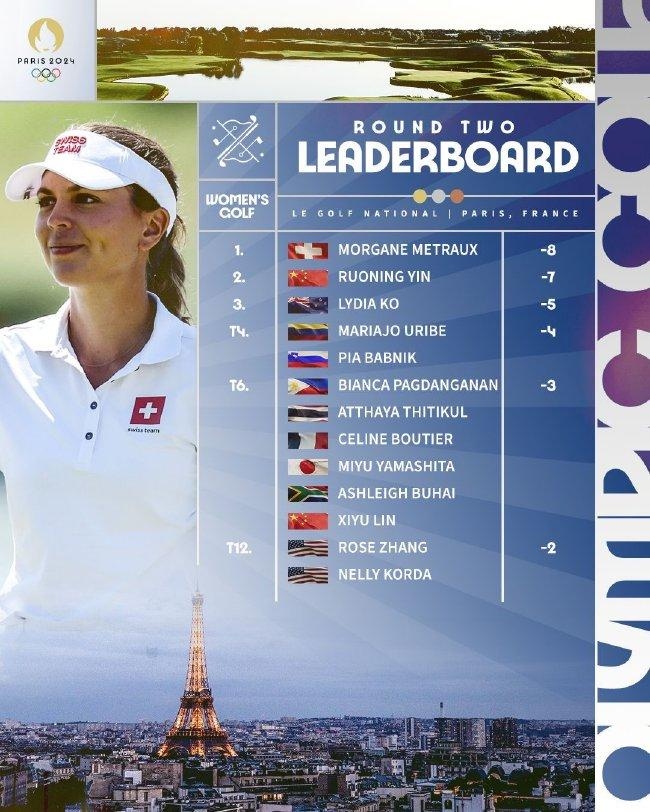北京時間8月9日,瑞士姑娘摩根-梅特羅(Morgane Metraux)星期四在巴黎國家高爾夫俱樂部信天翁球場打出66桿,取得奧運女子高爾夫項目半程領先。