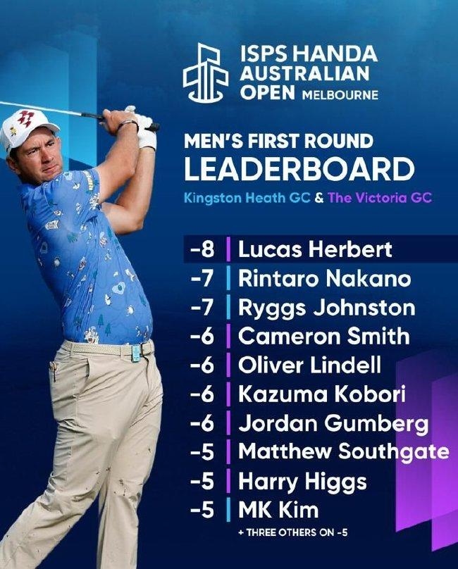 北京時間11月28日,盧卡斯-赫伯特(Lucas Herbert)星期四在潮濕的維多利亞高爾夫俱樂部打出63桿,低于標準桿8桿,其中包括最后一個洞射下老鷹,取得澳大利亞公開賽首輪領先。他的澳大利亞同胞,2022年英國公開賽冠軍卡梅隆-史密斯落后2桿。