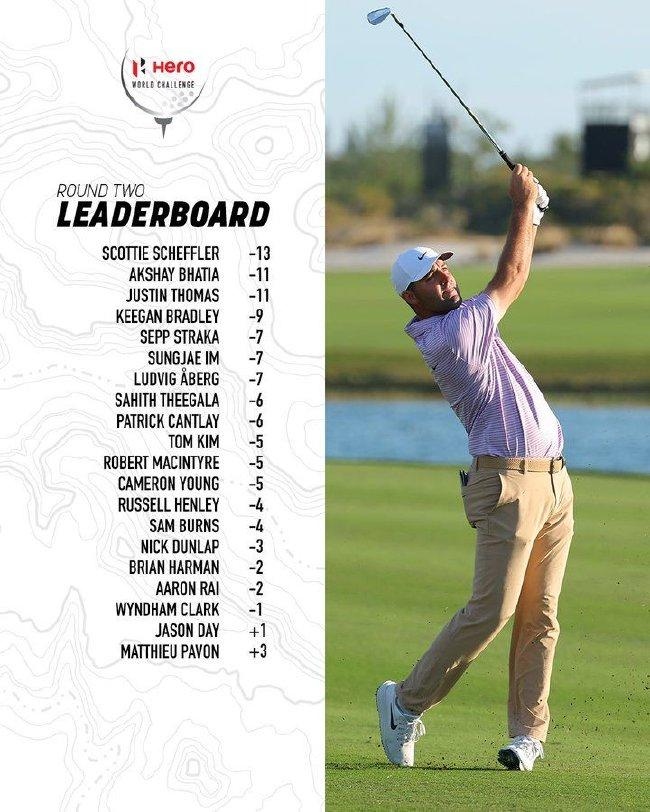 斯科蒂-舍夫勒兩輪成績?yōu)?31桿(67-64),低于標準桿13桿,領先阿克沙伊-巴蒂亞(Akshay Bhatia,66桿)和賈斯汀-托馬斯(67桿)2桿。兩位選手都在18號洞保帕,保持在了爭冠圈子之中。