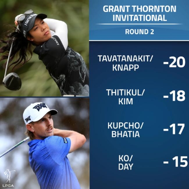 兩人兩輪成績為124桿(58-66),低于標準桿20桿,在這場由男女美巡賽聯合認證的非正式比賽中,領先金柱亨和吉諾-提提庫(Jeeno Thitikul)2桿。