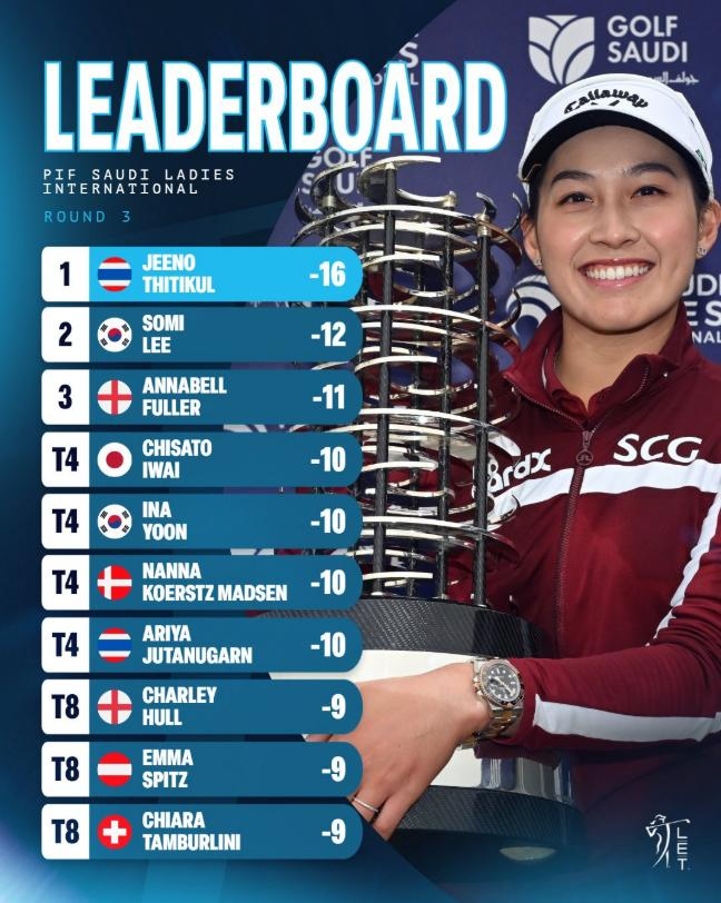 吉諾-提提庫帶著3桿領先進入最后一輪,星期六在利雅得高爾夫俱樂部打出69桿,低于標準桿3桿,三輪成績為200桿(67-64-69),低于標準桿16桿,毫無懸念地戰勝了韓國選手李韶彌(Lee Somi),取得個人第五個女子歐巡賽冠軍,也是2021年瑞士女子公開賽以來第一場勝利。