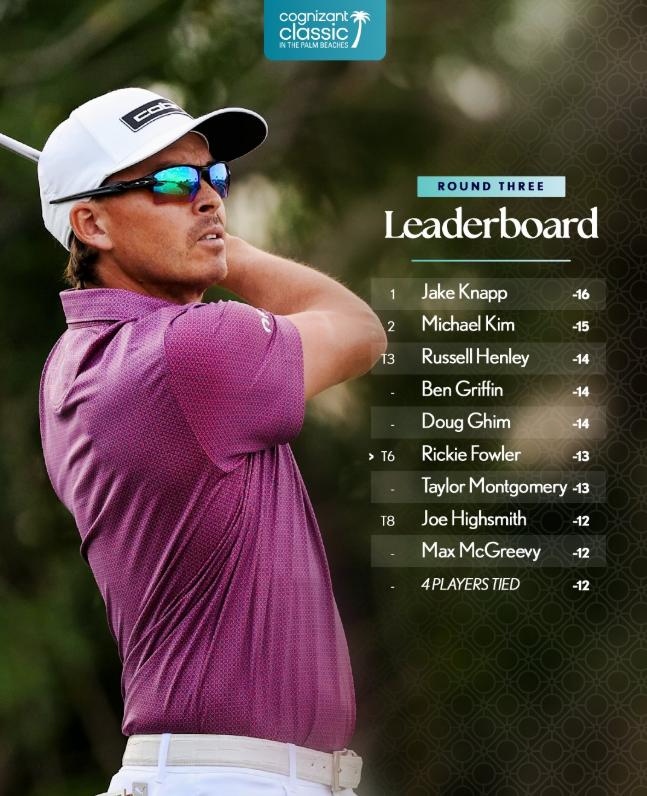 杰克-納普在首輪比賽中打出59桿,第三輪開(kāi)始的時(shí)候手握1桿優(yōu)勢(shì),但在轉(zhuǎn)場(chǎng)時(shí)已經(jīng)落后3桿。他在第16洞推進(jìn)12英尺小鳥(niǎo)推,并在最后一洞,五桿洞切桿加推桿抓鳥(niǎo),保持住領(lǐng)先位置。