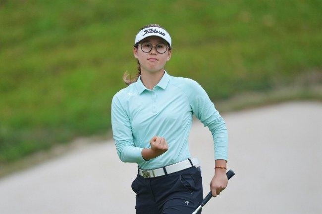 接著17號洞,她從18英尺之外推入小鳥,超越了林心恩。